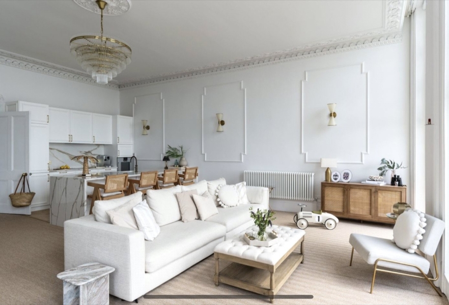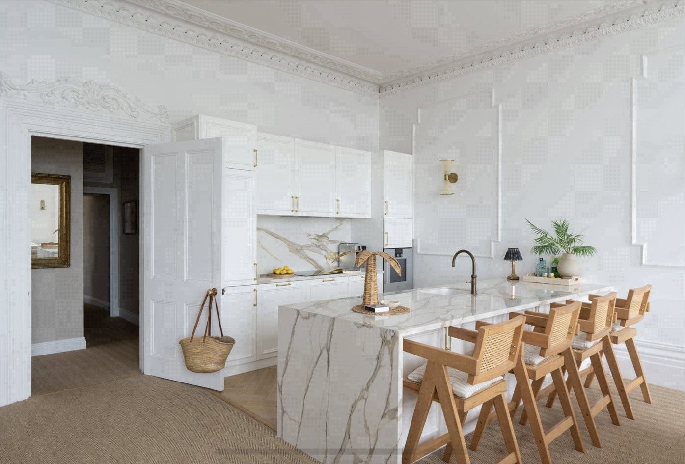 Upon entering, a welcoming central hallway creates an immediate sense of arrival and provides access to all principal rooms, with a well-considered layout that enhances both flow and functionality. To the front of the apartment, the magnificent open-plan kitchen, living and dining space forms the heart of the home. This beautifully arranged room is perfectly designed for both everyday living and entertaining, with ample space for relaxing and hosting.