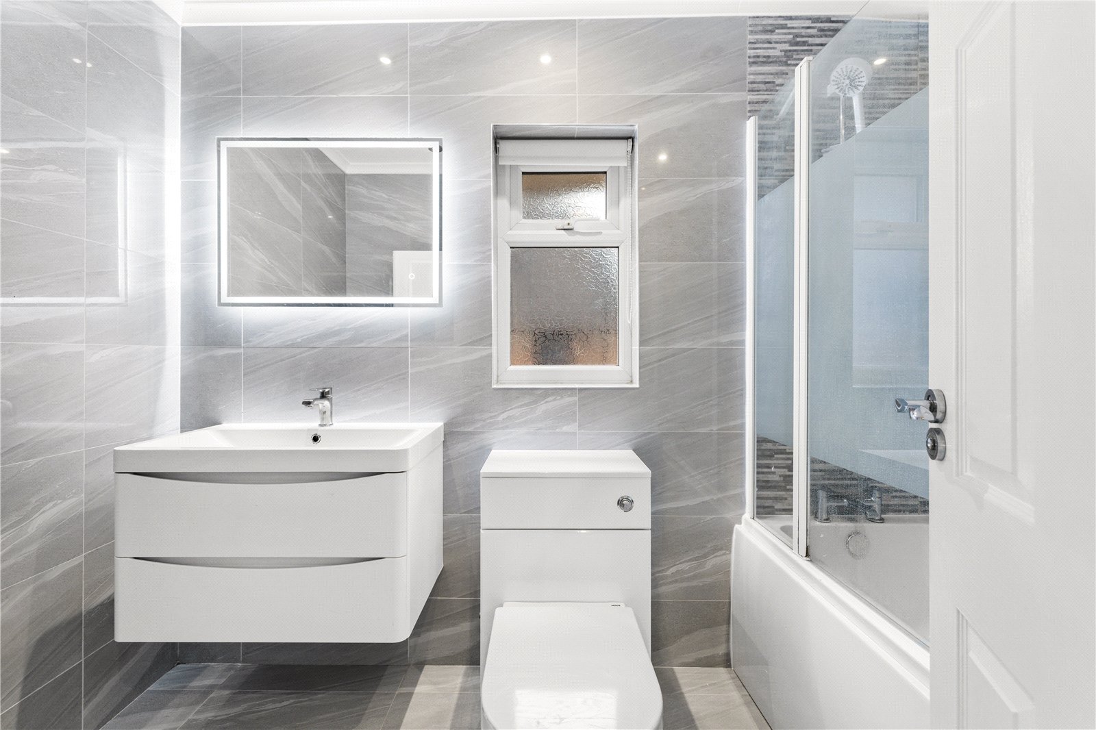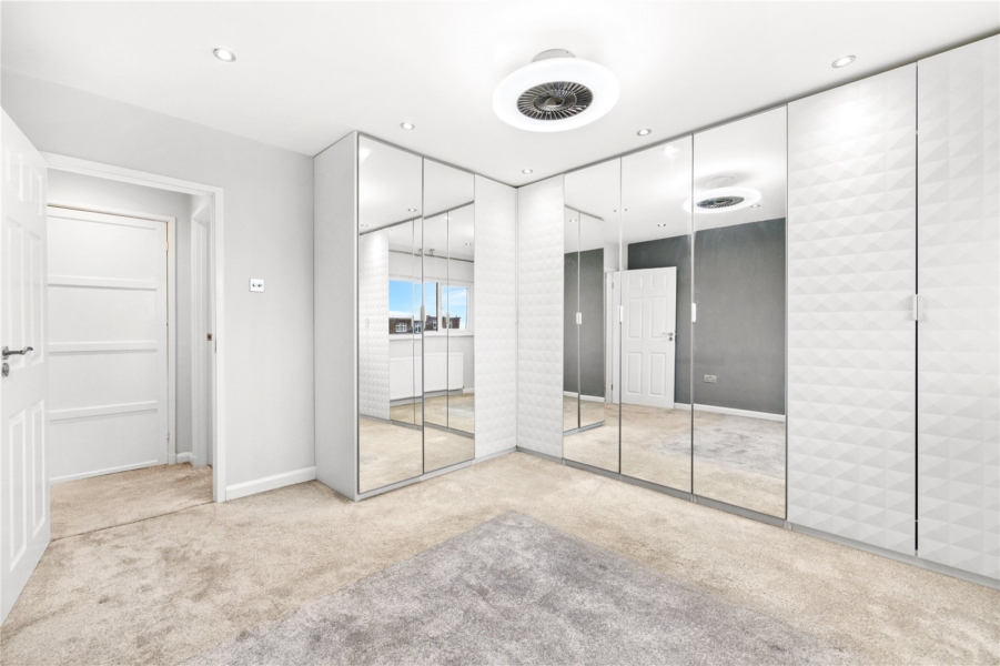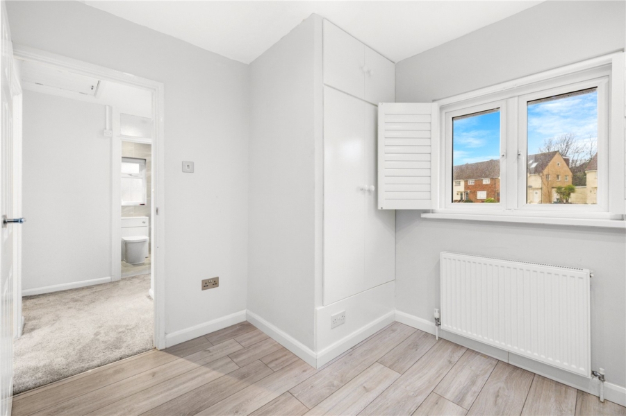 Upstairs, the neutral tiled bathroom has been thoughtfully designed and offers a bath with shower. There are two double bedrooms and one single all with storage.