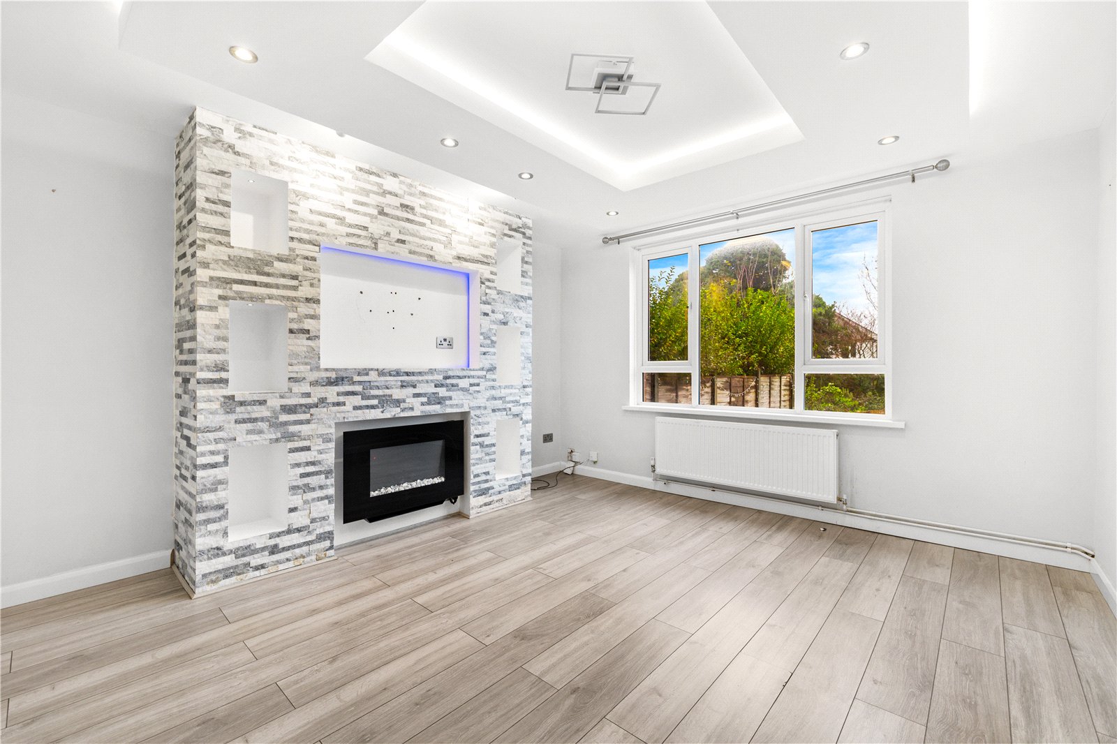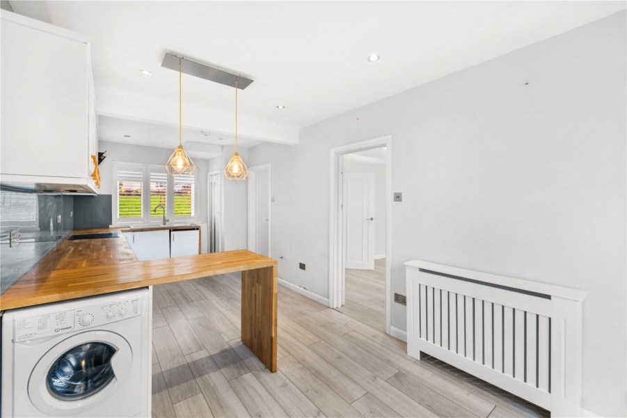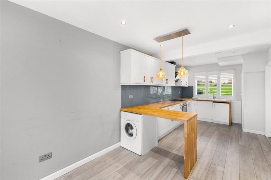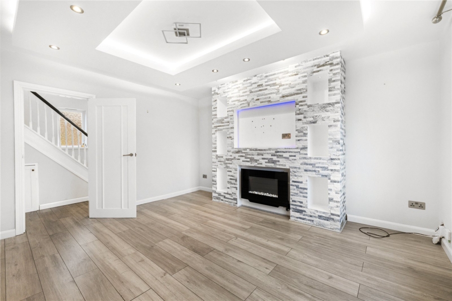 Inside, the spacious entrance hallway creates a warm and inviting first impression, offering plenty of room for storage or decorative touches. The heart of the home is the contemporary open-plan kitchen and dining area, which provides the ideal setting for family meals or entertaining guests.The living room is both cozy and elegant, featuring an electric fireplace.