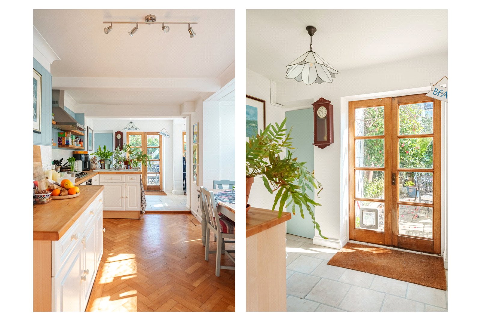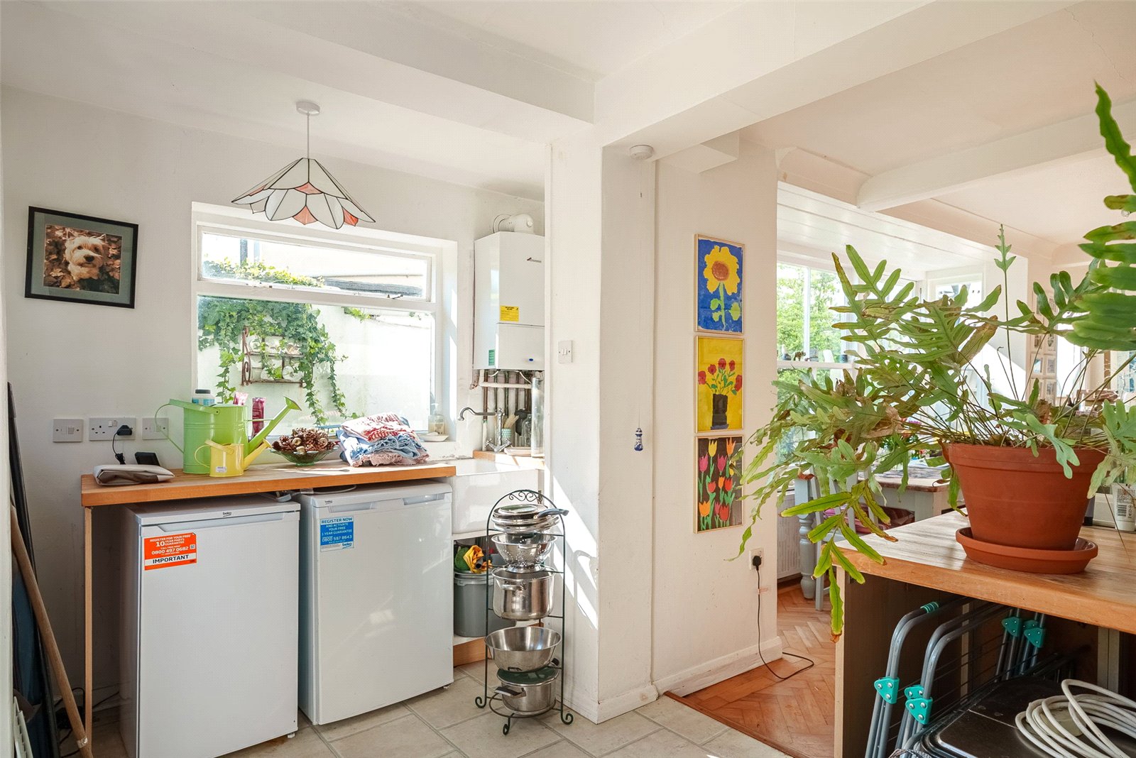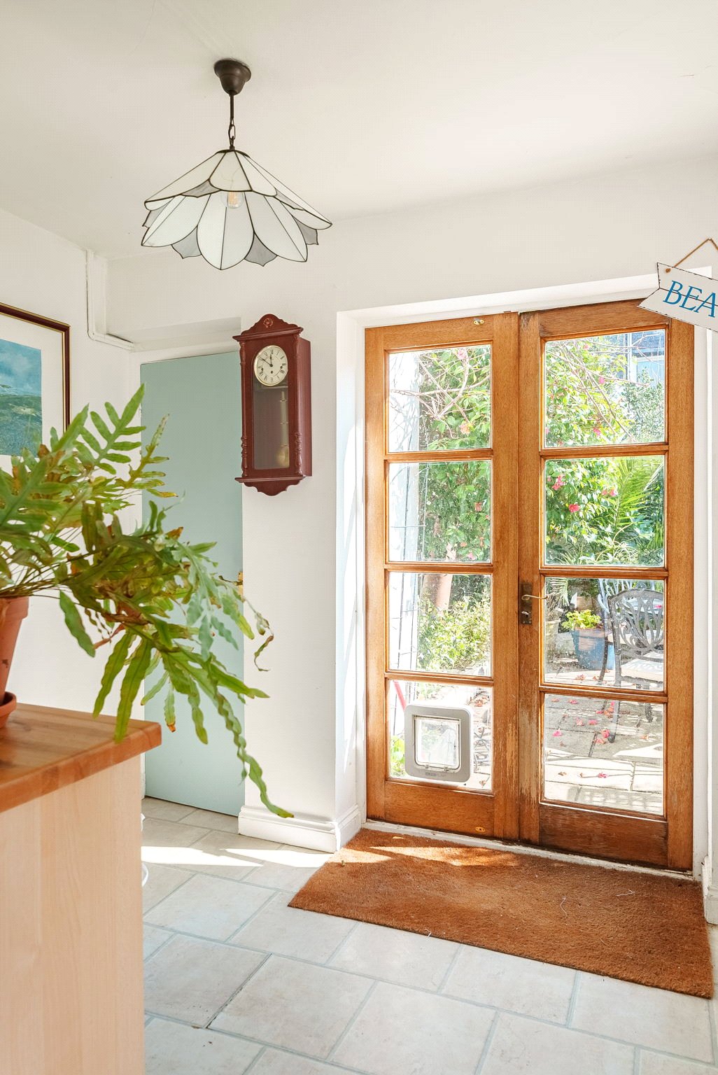 To the rear, the garden provides a peaceful and private retreat. Thoughtfully landscaped with established trees, planting, and borders, it offers a secluded outdoor haven, easily accessed via French doors from the kitchen—ideal for enjoying quiet moments or alfresco dining.
