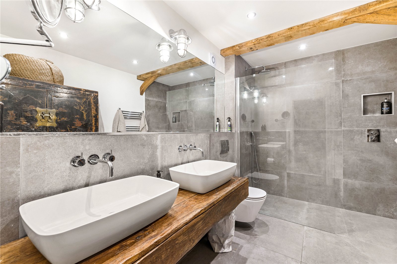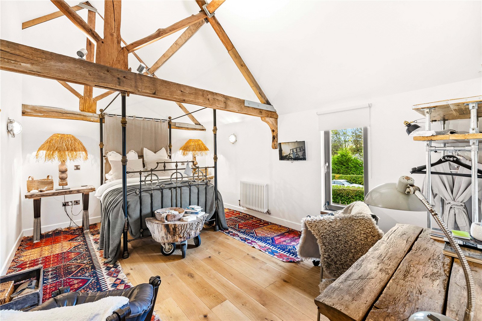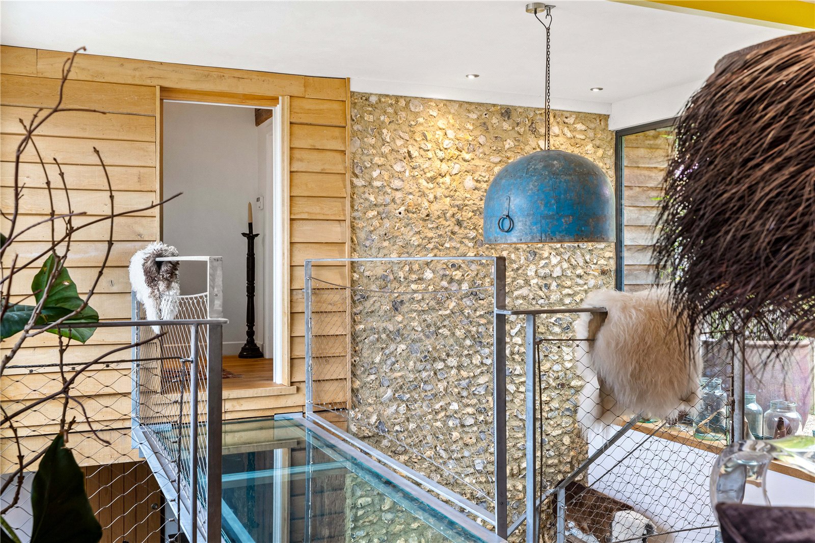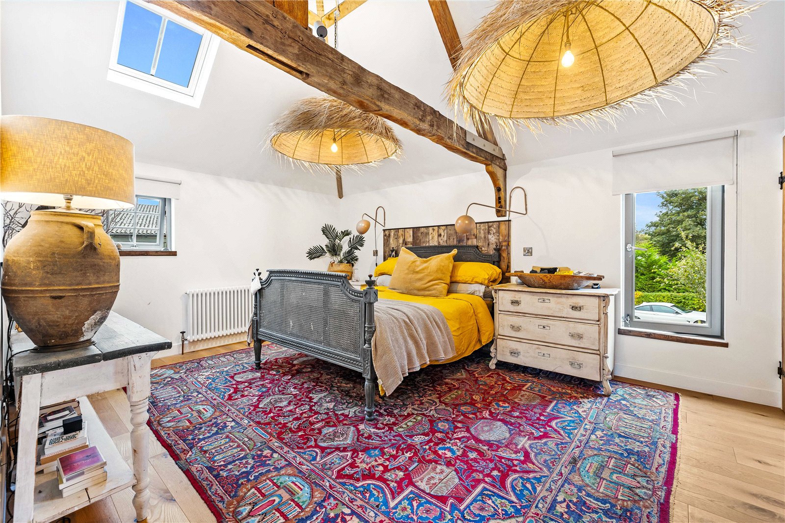 The current owners have carried out a complete top-to-bottom restoration with meticulous attention to both heritage and craftsmanship, earning the project an English Heritage Award. The result is a rare blend of authenticity and modern industrial design, where bold floor-to-ceiling glazing and dramatic vaulted ceilings sit comfortably alongside centuries-old oak.
