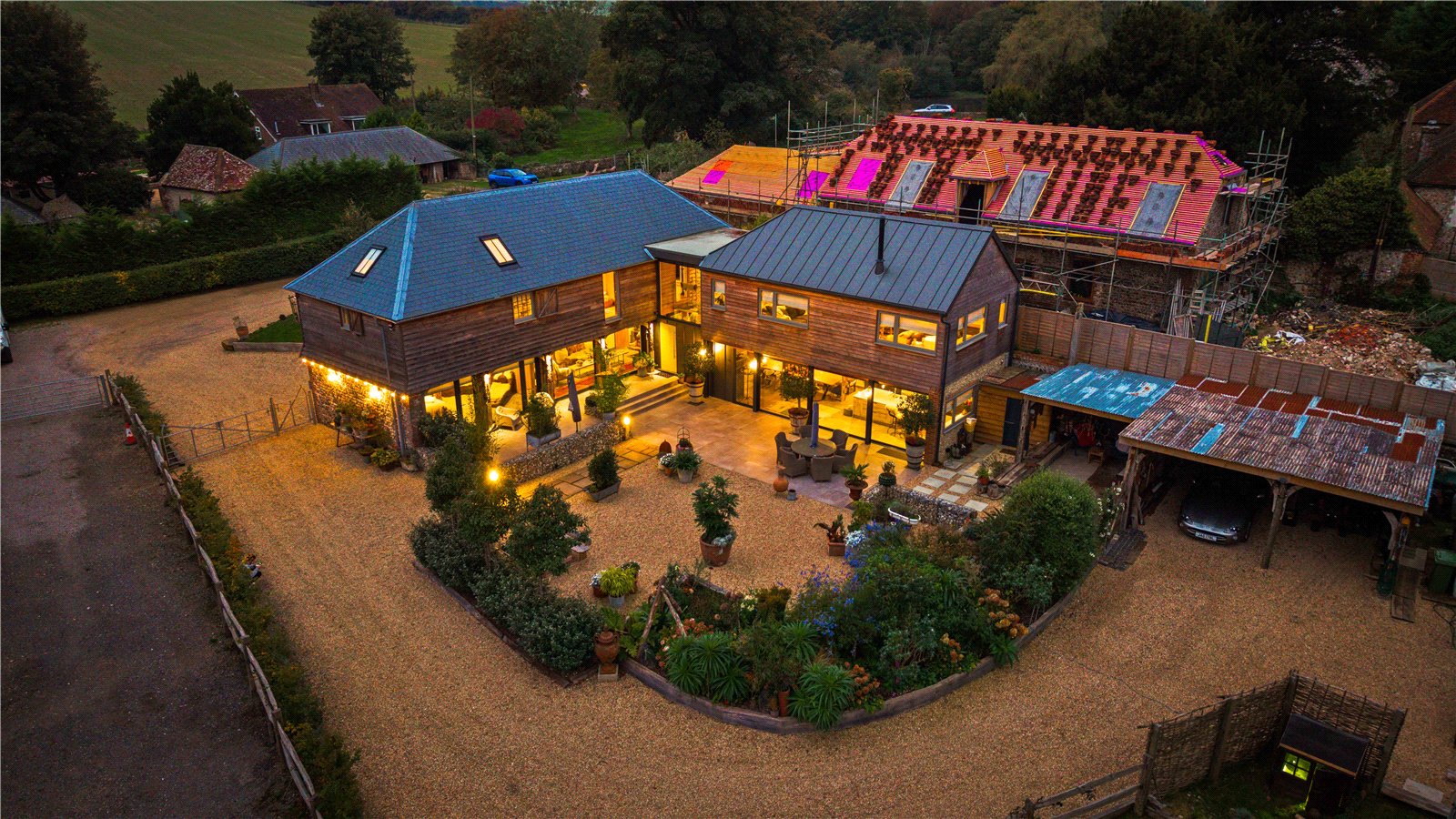 The restoration has been carried out with thoughtful detail throughout, using as much original timber as possible and natural lime wash paints for health and environmental benefits. Modern infrastructure includes oil-fired central heating with underfloor heating in the contemporary extension (and traditional radiators in the barn), metal guttering, CCTV security, alarm system, water softener, Klargester private sewage system and a system preconfigured for future conversion to an air-source heat pump. There is also an electric vehicle charging point and extensive exterior lighting.