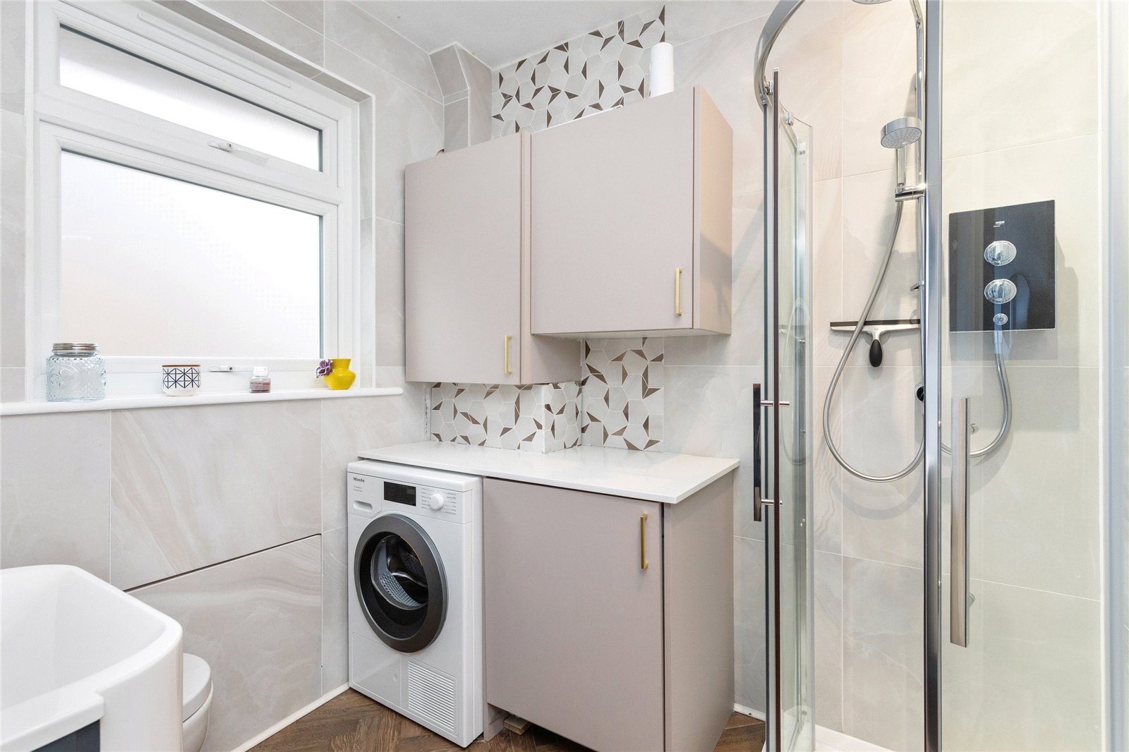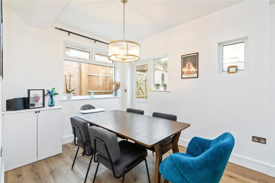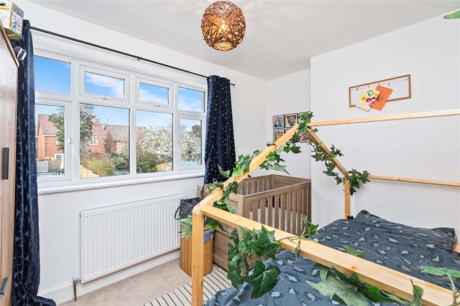 Leading directly from the kitchen is a conservatory, separated by stylish Crittall-style doors. This versatile space works perfectly as an additional reception room, family snug or children’s playroom, while still feeling connected to the main living area.