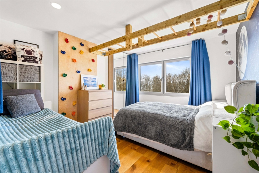 • The “Adventure” Bedroom: A second large double bedroom, perfect for children, featuring a bespoke built-in climbing frame and monkey bars.