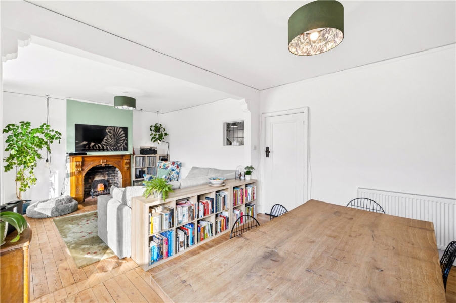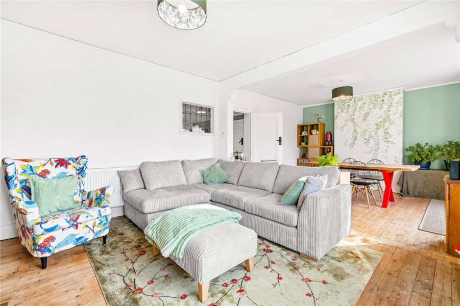 • Expansive Living Space: A superb open-plan living and dining room spans over 25 feet, featuring stylish neutral décor and direct access to the garden—ideal for entertaining.