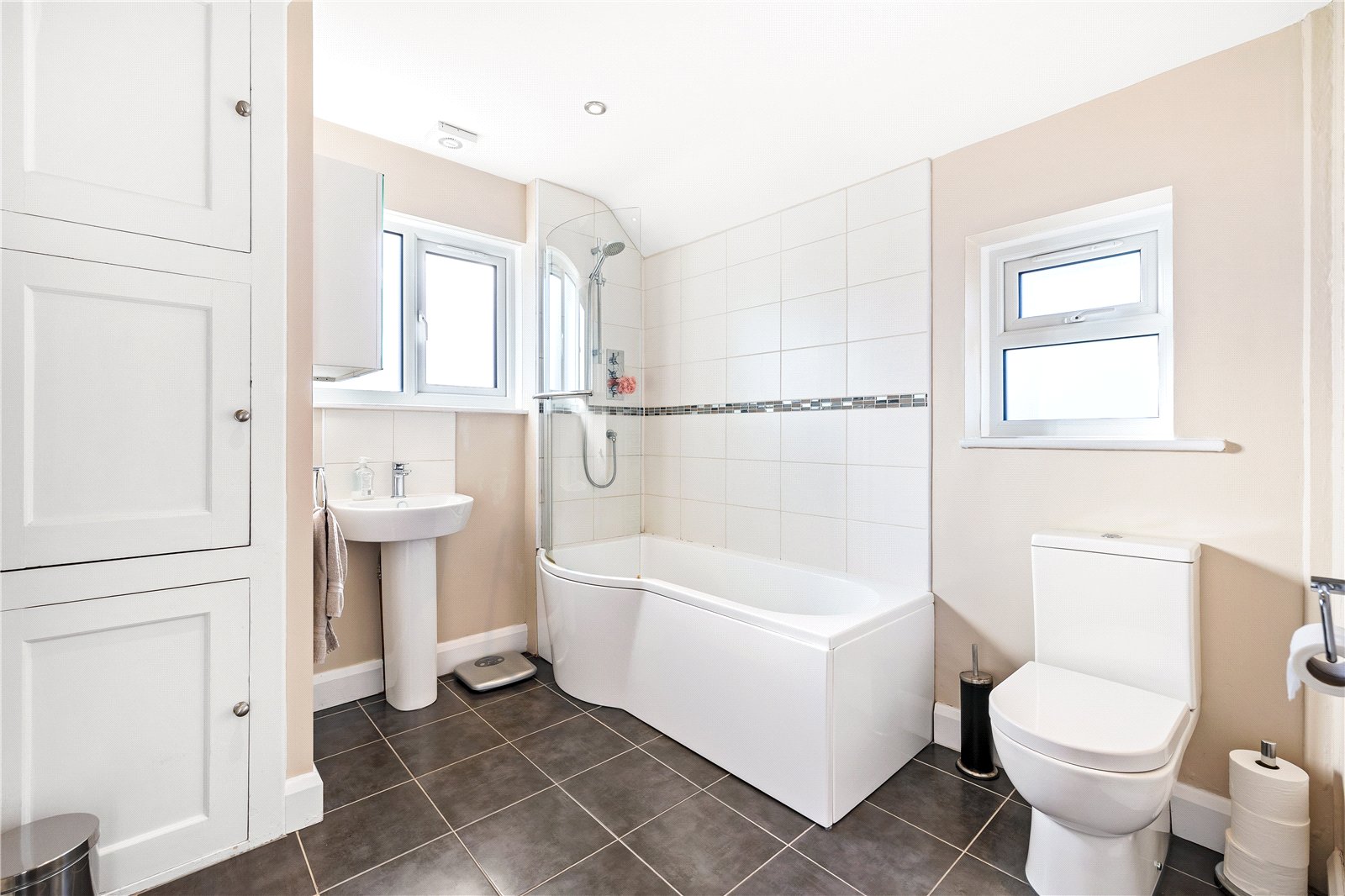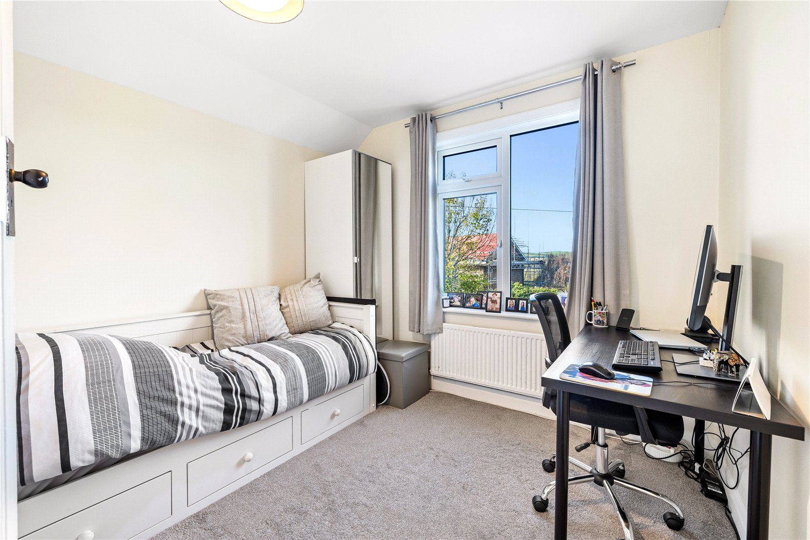 On the first floor, there are three well sized bedrooms, with the main bedroom benefitting from built-in wardrobes, along with a family bathroom. The second floor offers two further spacious rooms, including an excellent bedroom or home office, plus an additional bathroom, perfect for older children, guests, or those working from home.