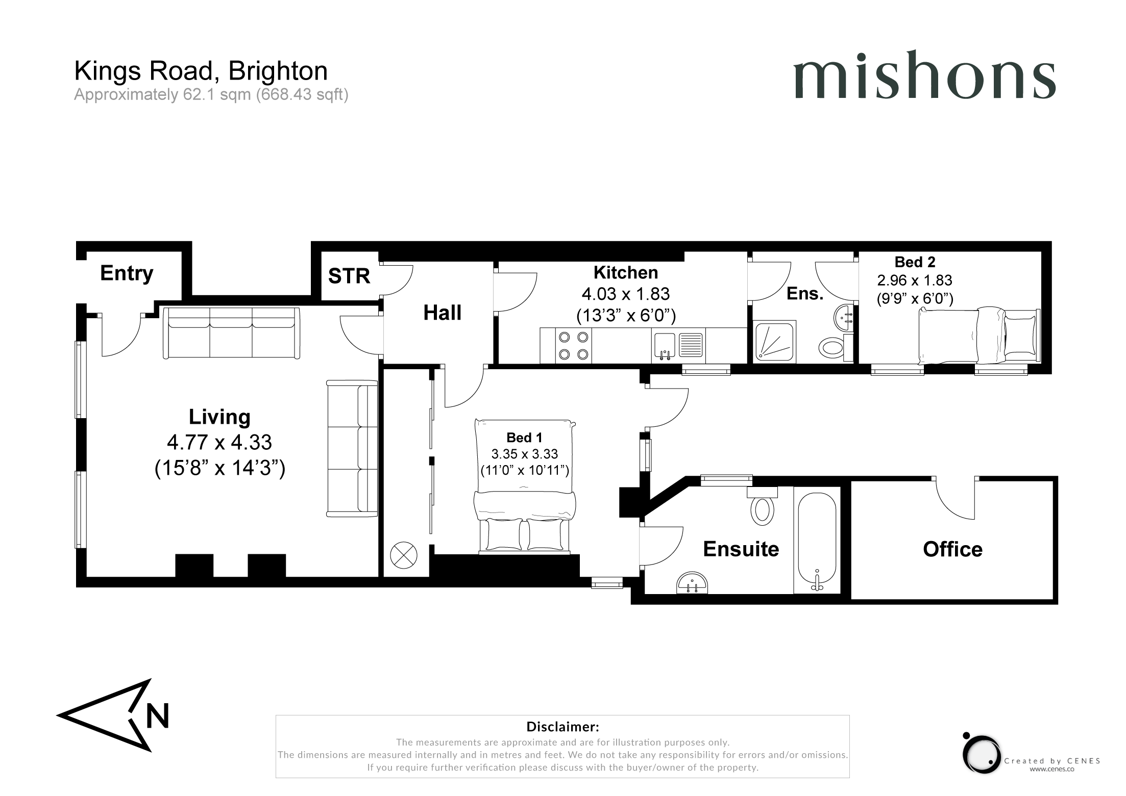 Throughout the apartment, you’ll find engineered oak flooring, bespoke cast iron radiators, dentil cornicing, and elegant Farrow & Ball colour schemes. Polished brass fittings, Fired Earth tiling in the hallway and bathroom, and London Mosaic encaustic tiles in the entrance add subtle character and craftsmanship.