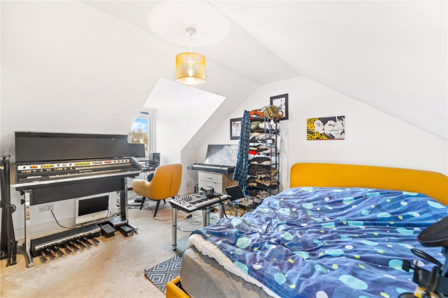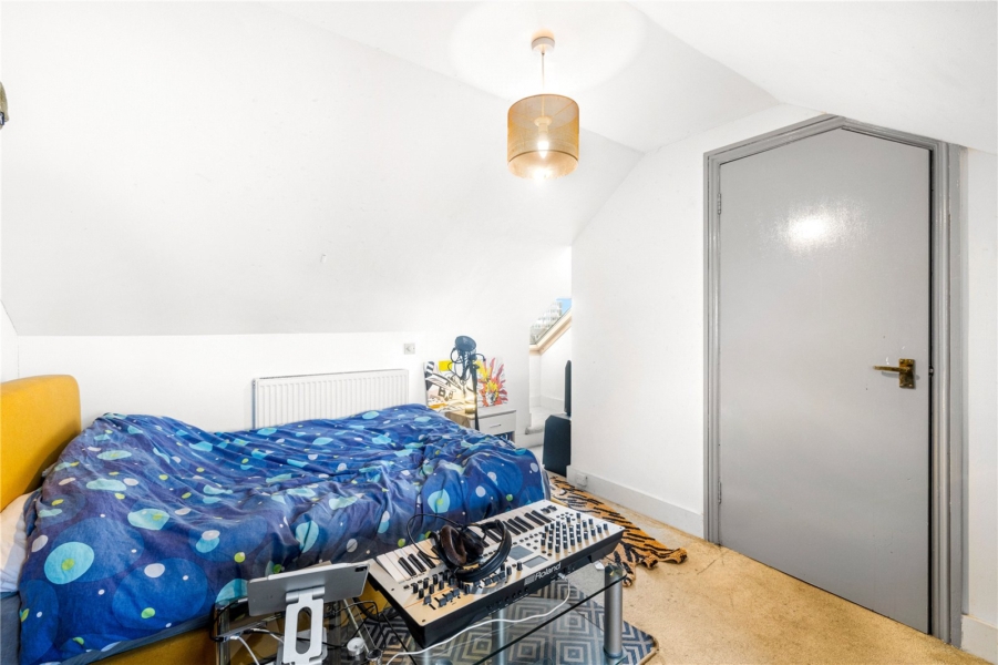 Stairs rise to the third floor, where the principal bedroom enjoys privacy and attractive proportions, creating an ideal retreat.