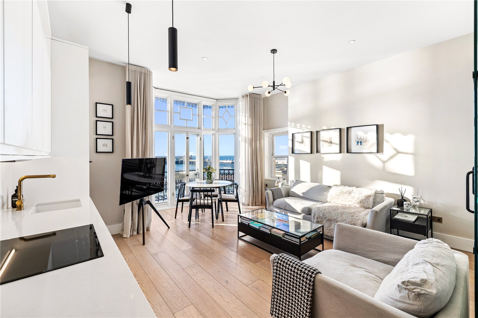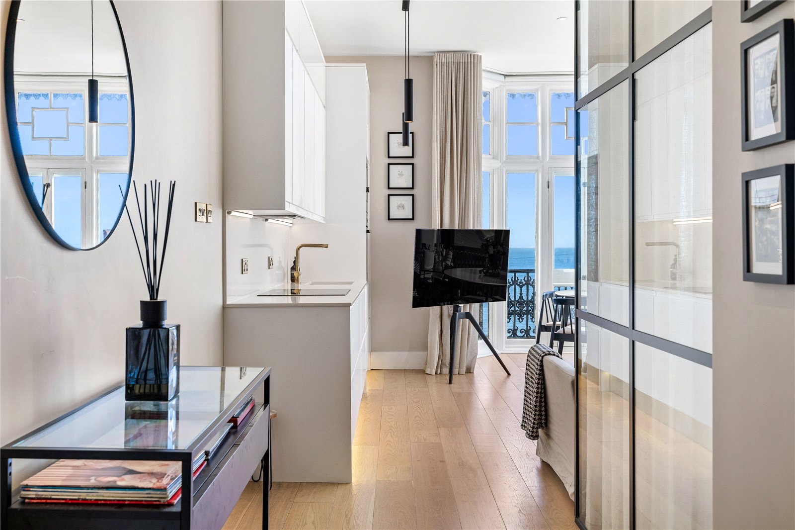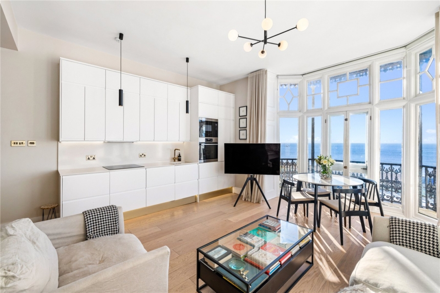 A stunning one-bedroom apartment on Marine Parade with direct sea views, this home is a harmonious blend of modern luxury and elegant period features.