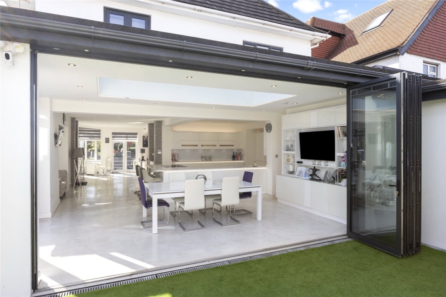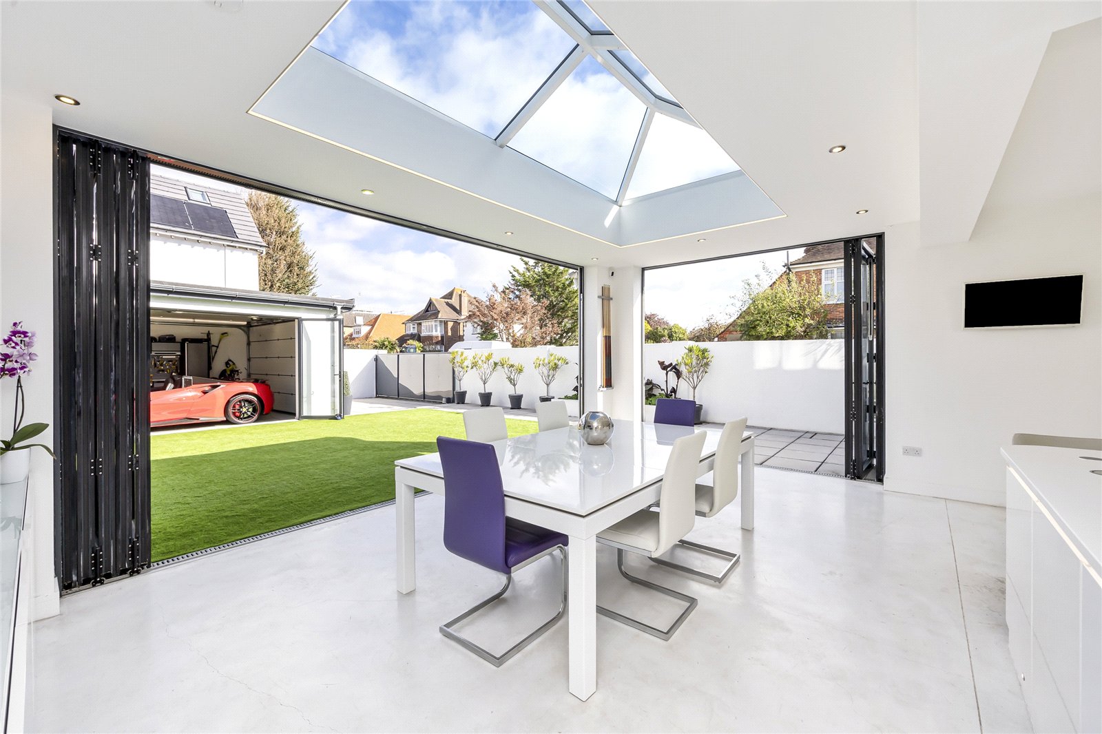 The ground floor provides a superb sense of scale and flow. A welcoming entrance leads through to an exceptional open-plan kitchen and dining room, thoughtfully arranged with ample workspace and room for large gatherings.