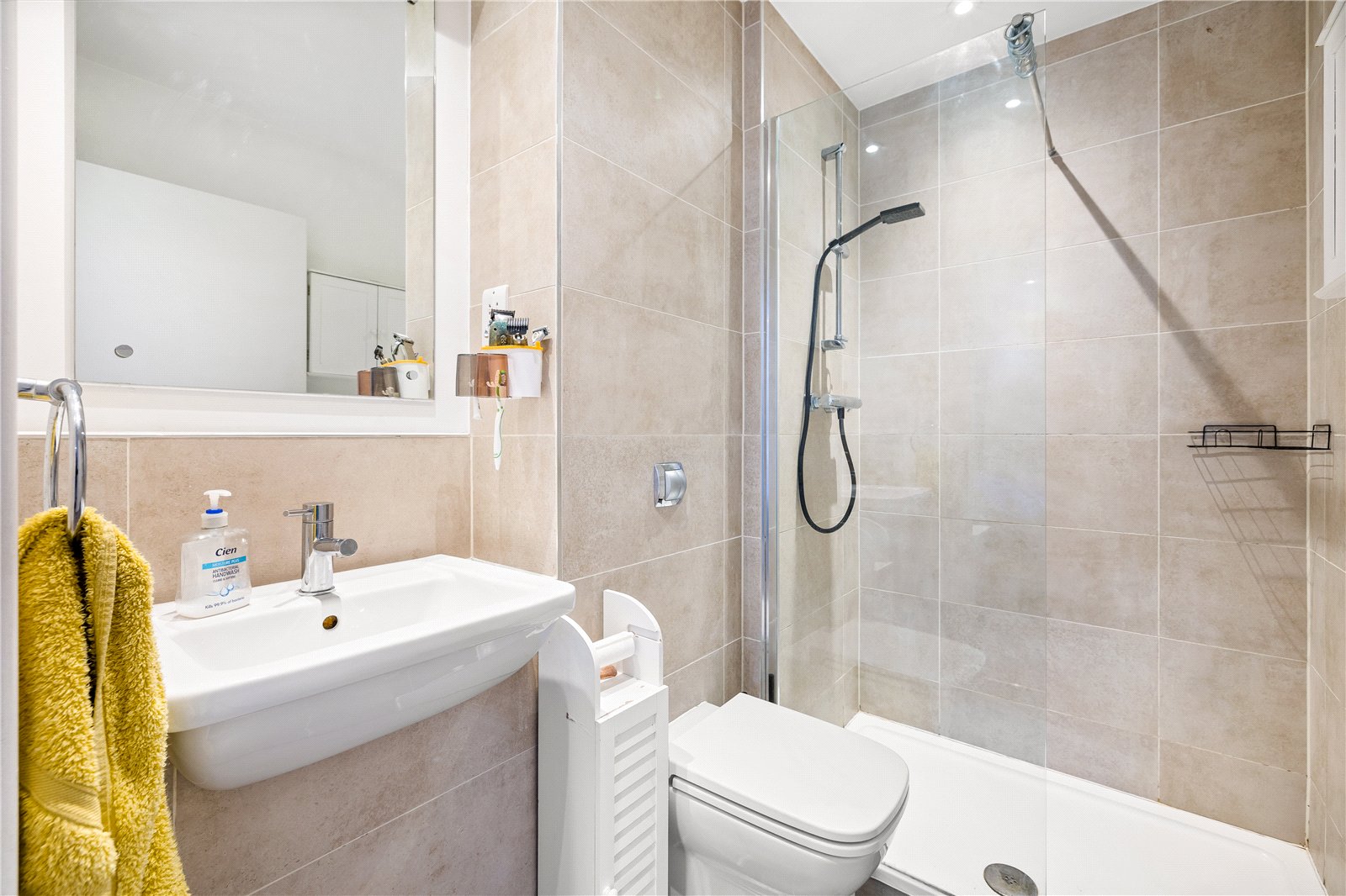There are two good size double bedrooms. The master bedroom benefits from its own en-suite shower room. The second bedroom works equally well as a guest room, home office or for sharers, and is served by a separate modern bathroom. A spacious entrance hall with a large storage cupboard adds to the practicality.