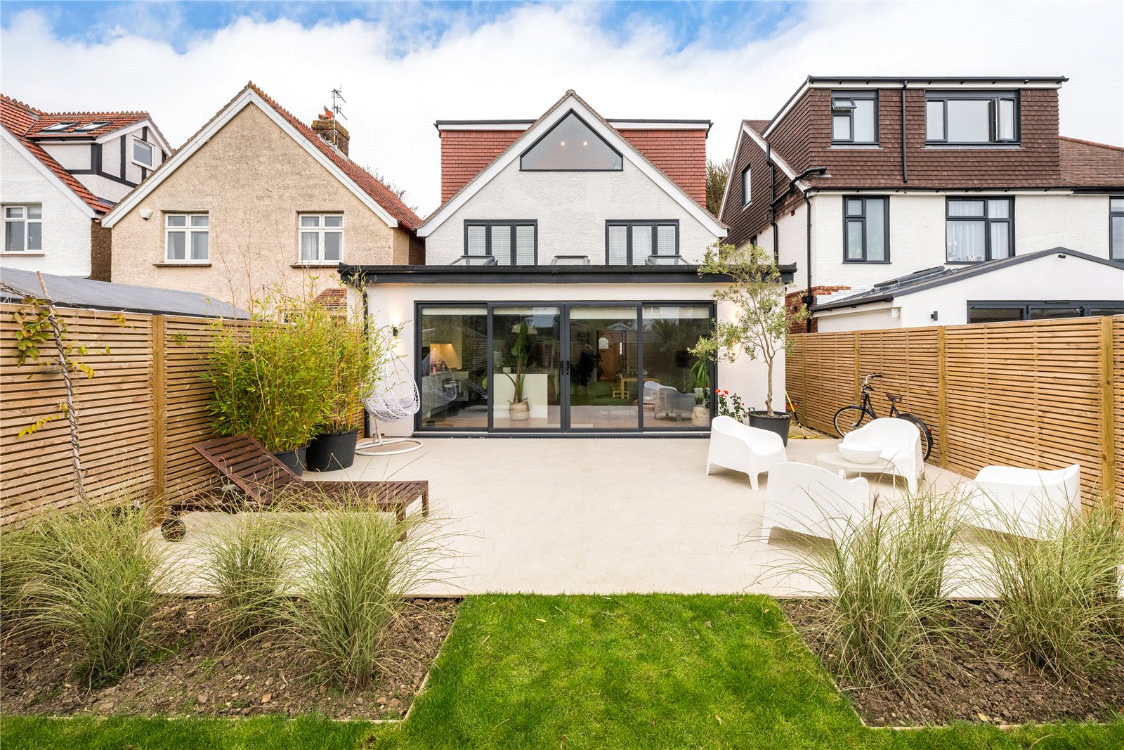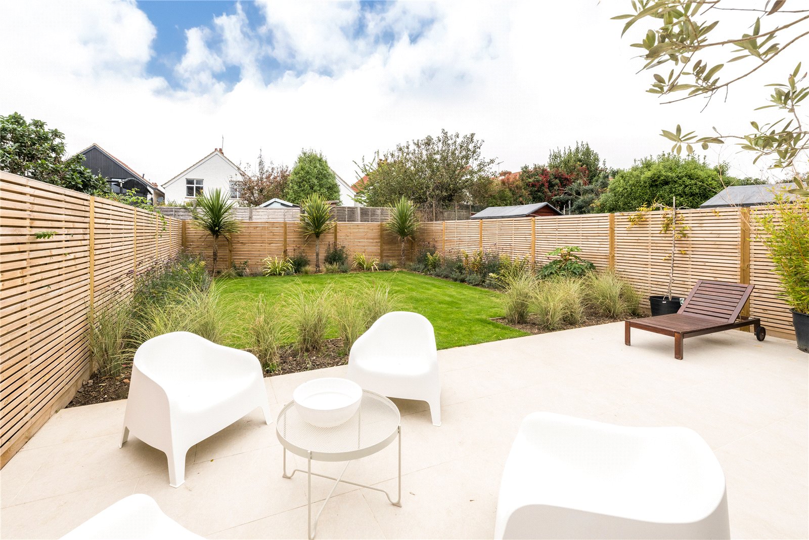 Outside, enjoy a newly landscaped west-facing garden with three large palm trees, hydrangeas, flax and grasses – perfect for afternoon sun and evening relaxation – along with driveway parking to the front for 2/3 cars.