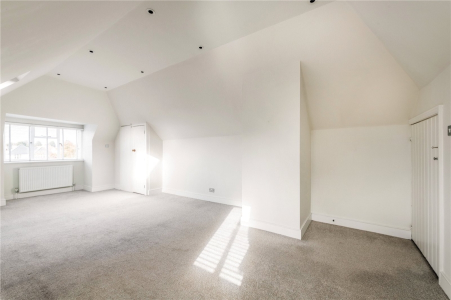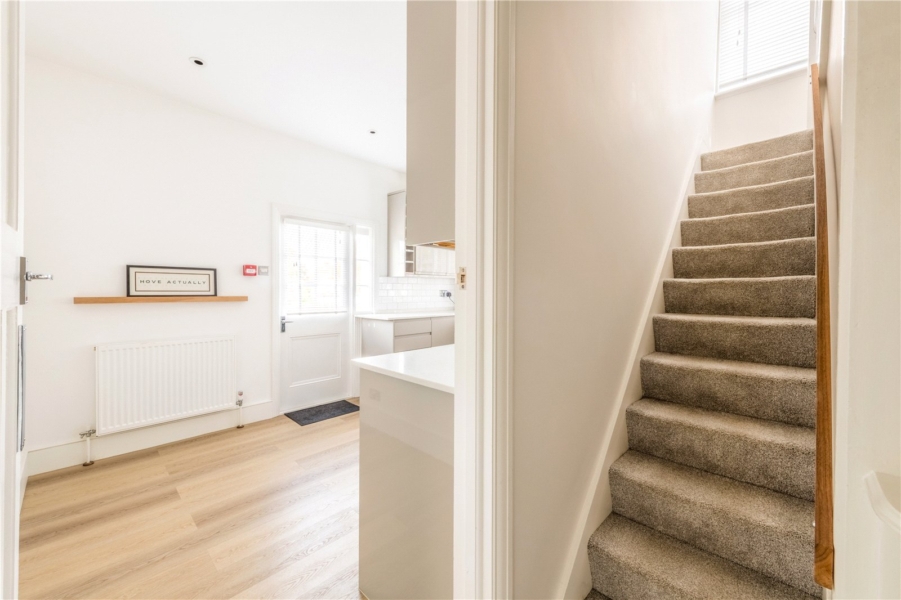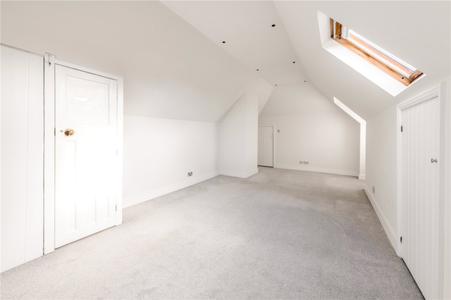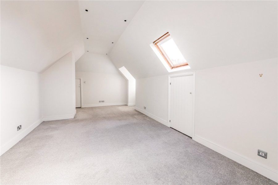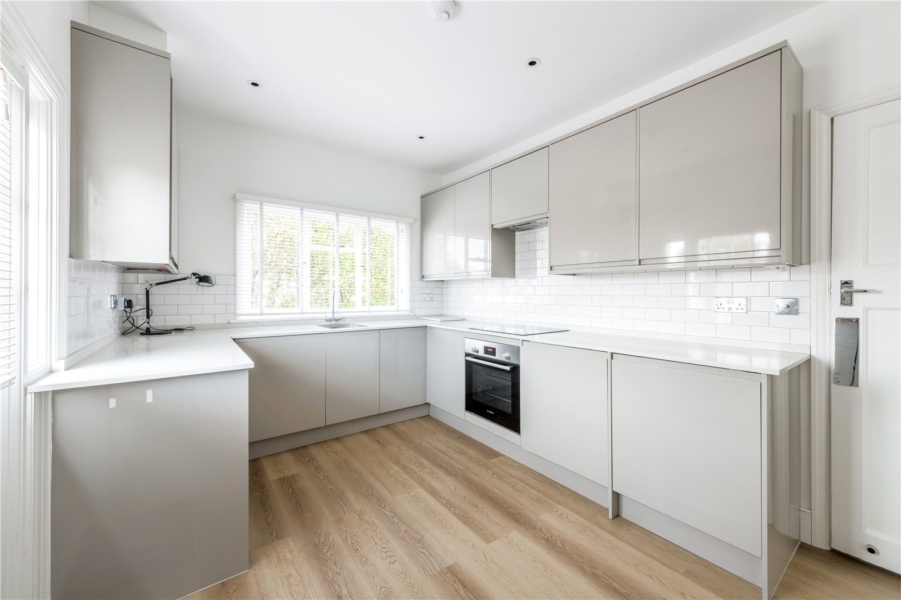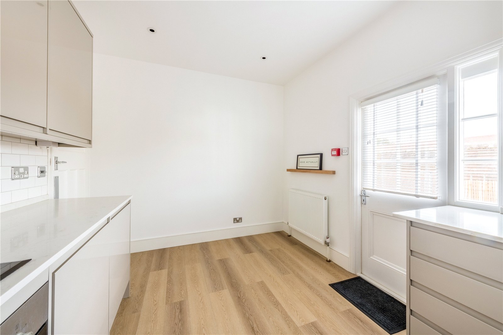 Finished to a high standard throughout, the apartment boasts a generously proportioned and adaptable living area, enhanced by soaring ceilings, expansive windows, and charming views across the neighbourhood. The separate kitchen is a masterpiece of design, featuring sleek quartz worktops, integrated appliances, and ample space for a dining table and chairs – perfect for both everyday meals and entertaining.
