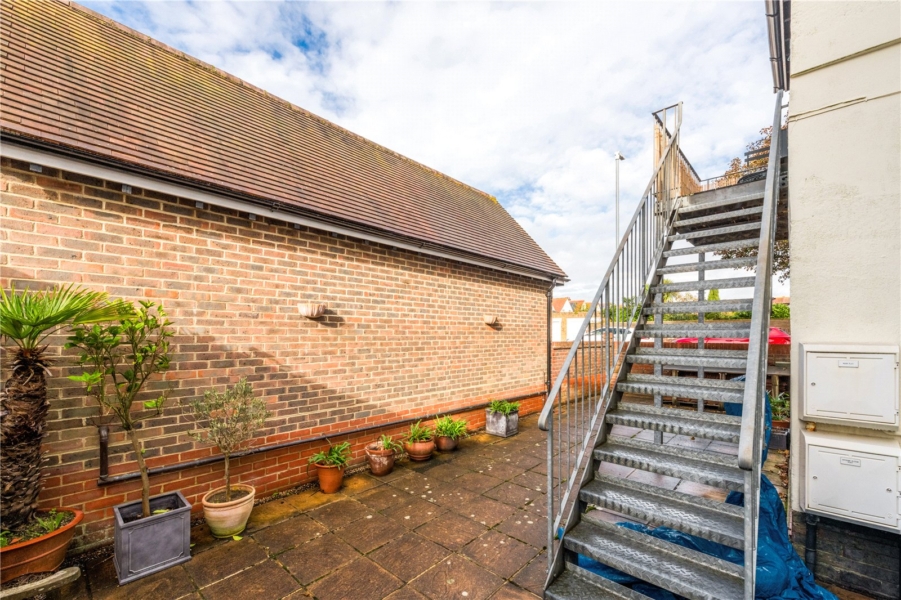 The property further impresses with a lovely double bedroom and a stylish modern shower room. Step outside to your private balcony, a tranquil spot for morning coffee or evening relaxation, and enjoy access to a communal patio area for social gatherings or quiet moments outdoors.