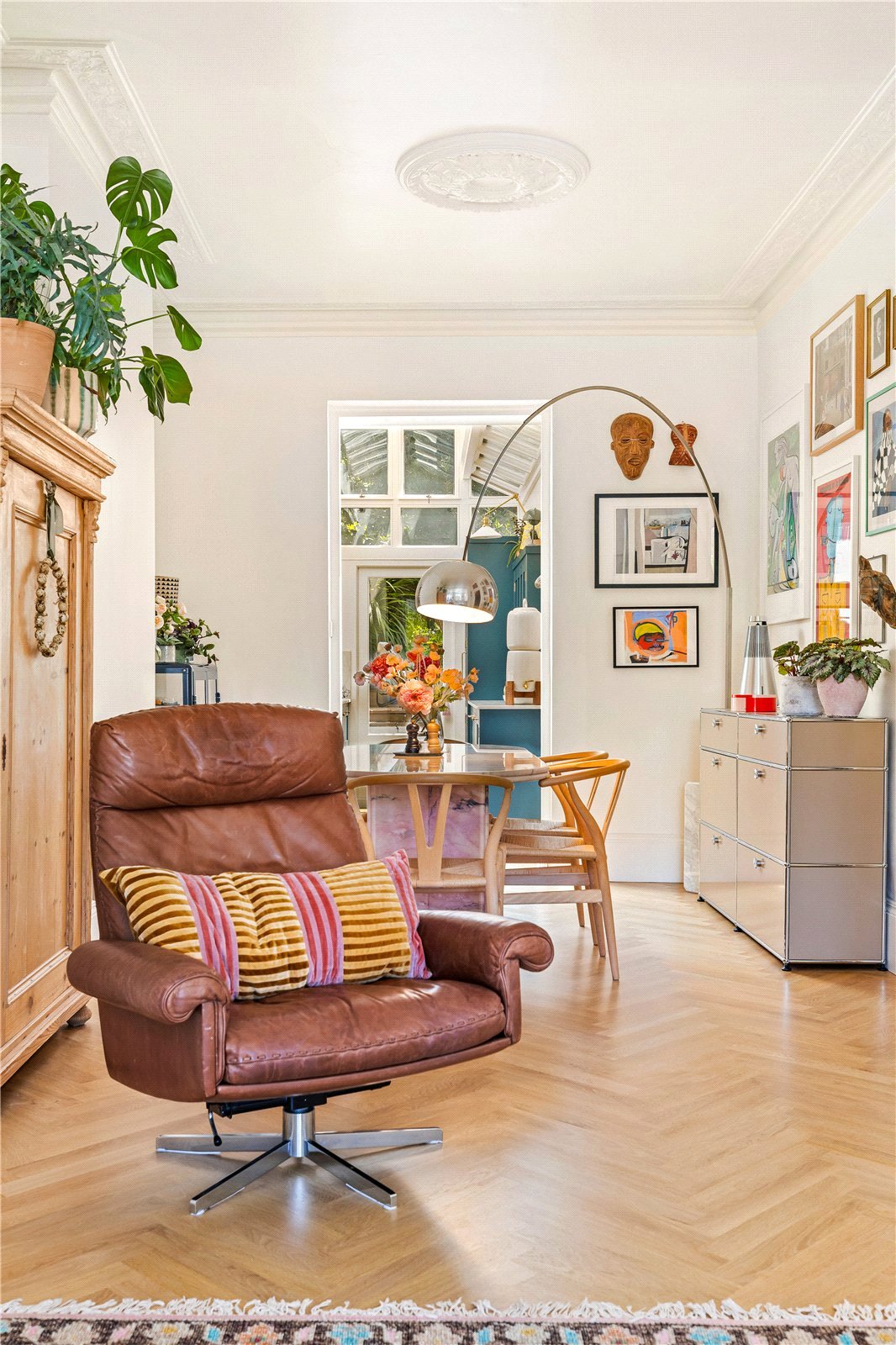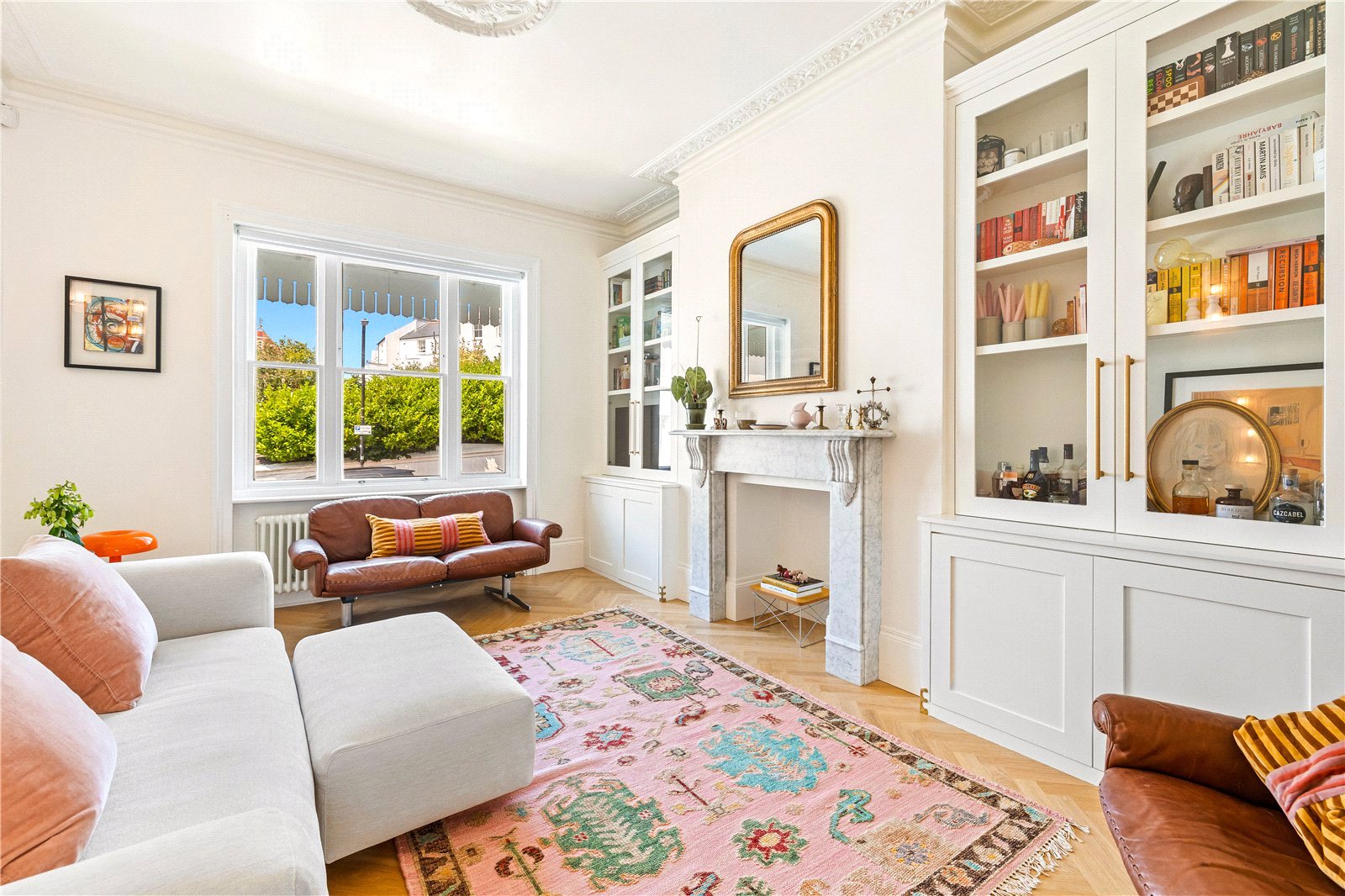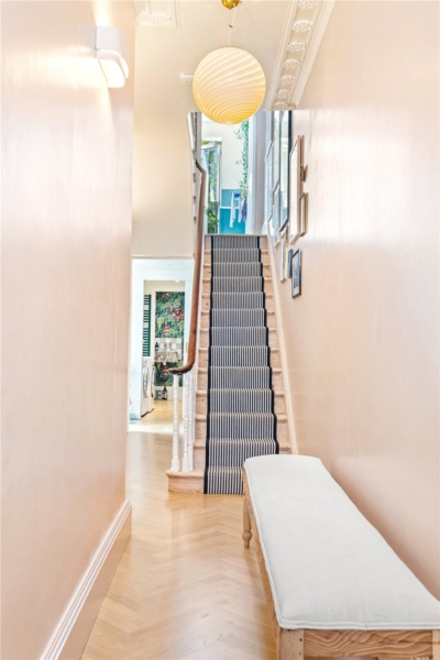 This handsome mid-terrace house offers striking kerb appeal, and the sense of quality continues throughout the interior. From the moment you enter, you are welcomed by a warm and sophisticated palette of colours, carefully chosen finishes and restored period features, all complemented by elegant herringbone flooring and generous proportions.