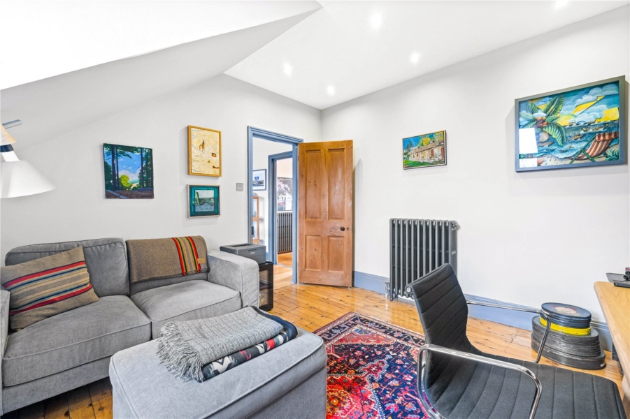 Rising to the third floor, you will find two further double bedrooms, one of which benefits from a delightful south-facing balcony with far-reaching views, providing a tranquil retreat filled with natural light.