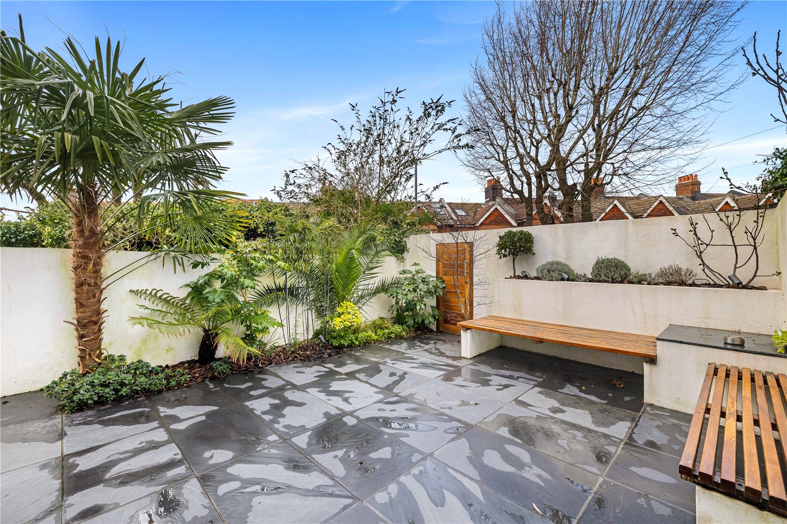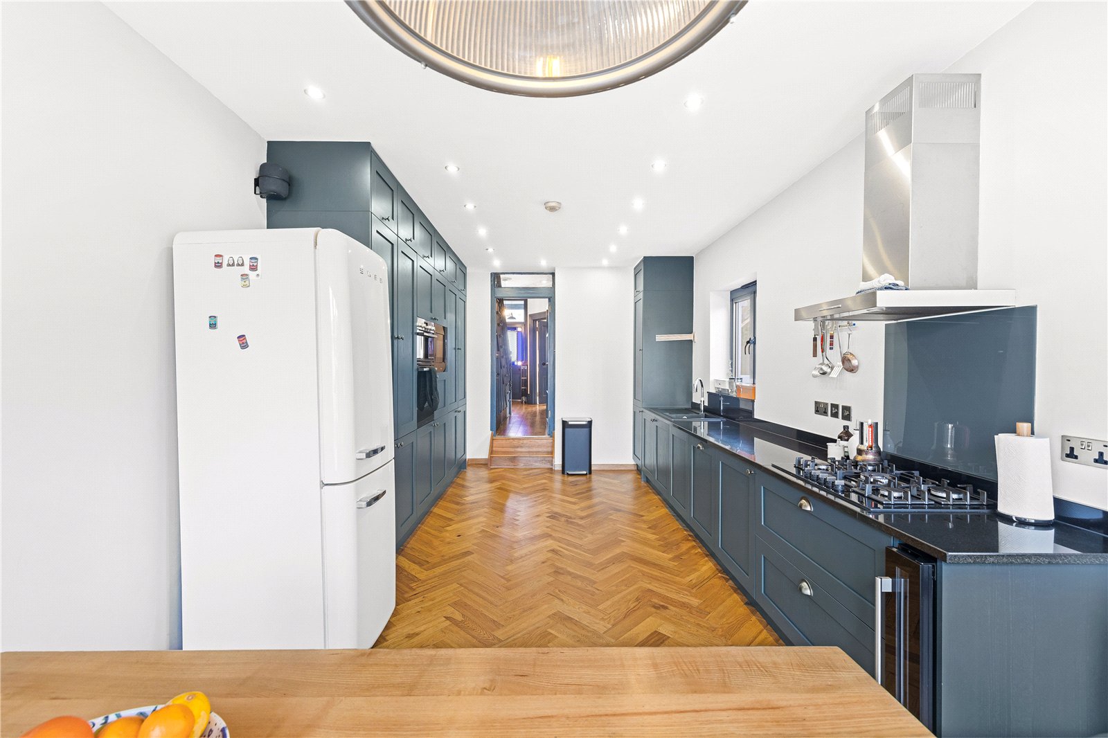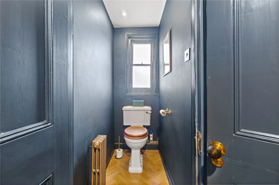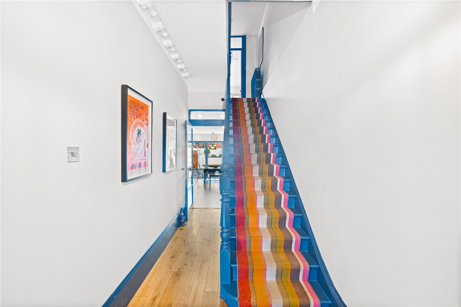 The ground floor is both impressive and welcoming, featuring a generous through lounge and dining area with high ceilings, original radiators, elegant period features and a striking feature fireplace complete with a log burner. To the rear, a high-end, modern kitchen has been recently fitted and opens seamlessly via bi-fold doors onto a landscaped patio garden, ideal for entertaining and indoor-outdoor living.