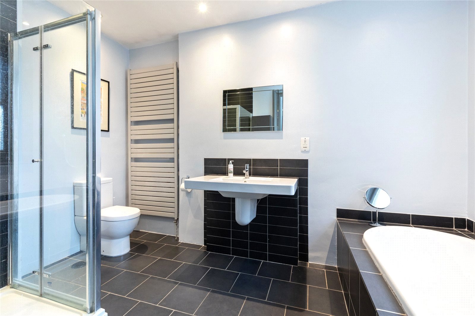 A separate hallway enhances privacy and flow, leading to two generously sized double bedrooms, both offering excellent proportions and comfortable accommodation. The apartment further benefits from a luxurious, spa-like main bathroom, along with the added convenience of a separate WC located off the entrance hall.