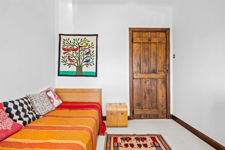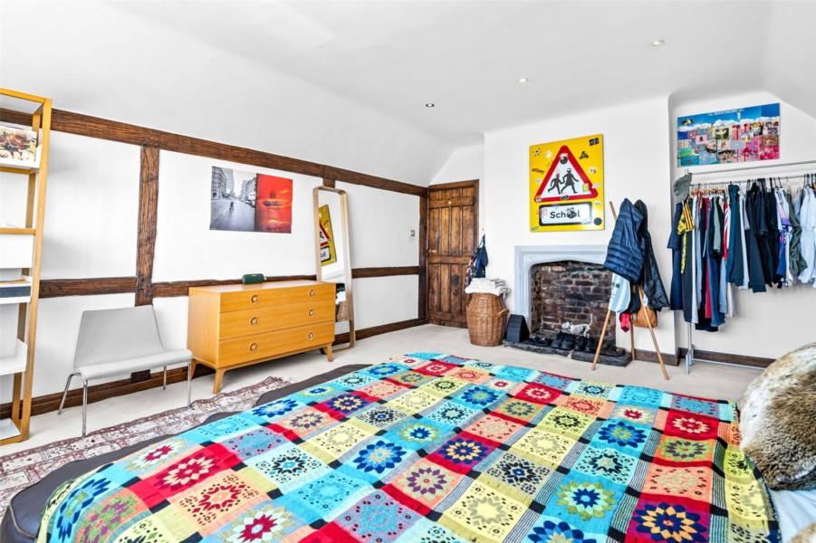 A second reception room flows effortlessly from the hallway, full of rich character, with another charming period fireplace that adds to the home’s warm and storied ambiance.
