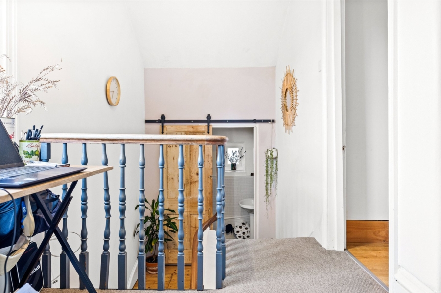 Accessed via a well-maintained communal stairway, the accommodation opens into a welcoming entrance hallway. Unusually for a one-bedroom property, the hallway offers sufficient space to comfortably accommodate a dedicated home office or study area, making it an ideal option for those who work from home and value a defined workspace separate from the main living areas.