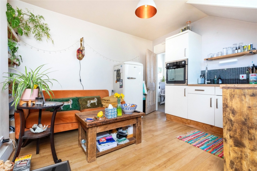 The generous lounge provides comfortable living and dining space, enhanced by large windows that allow natural light to flood the room throughout the day. The fitted kitchen is thoughtfully laid out, offering ample storage and worktop space, making it both practical and functional.