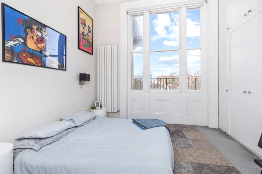 The flat immediately impresses with its high ceilings, period detailing and natural sense of flow, creating a space that feels both charming and easy to live in. As you enter, a separate galley kitchen sits straight ahead, flooded with natural light and offering generous worktop and surface space. Practical, bright and well laid out.