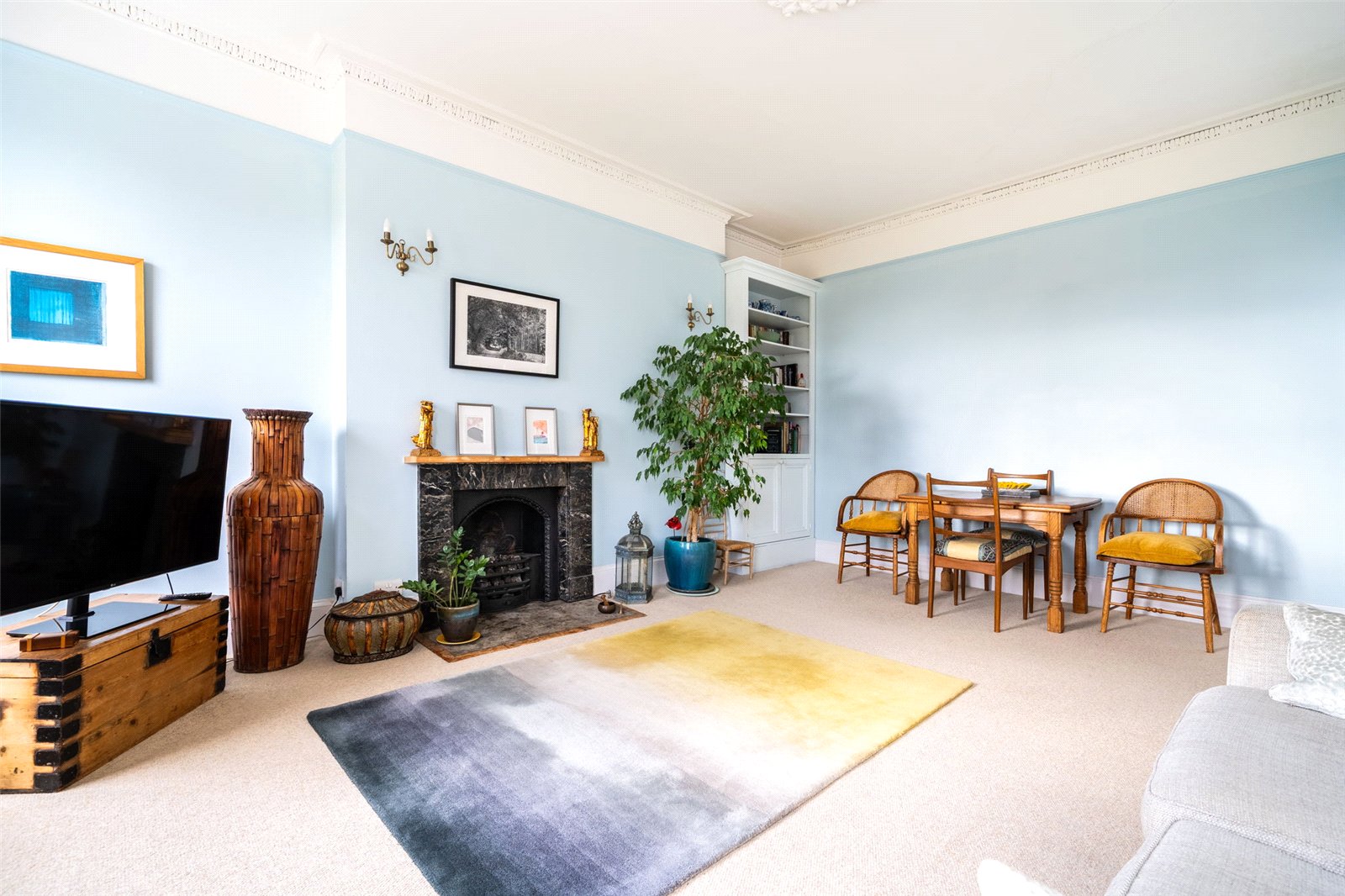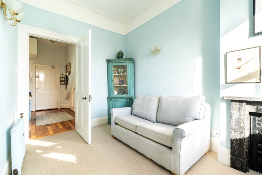 Beautifully presented, the apartment retains an abundance of original period features that have been thoughtfully preserved. The spacious lounge is a highlight, featuring an exquisite original ceiling rose and an elegant fireplace that has been sensitively adapted to incorporate gas coals within the original grate, with the chimney fully lined. Throughout the home, the original doors, architraves, and ornate ceiling cornicing remain intact, while the sash windows sit within their original frames, flooding the interiors with natural light and enhancing the property’s sense of grandeur.