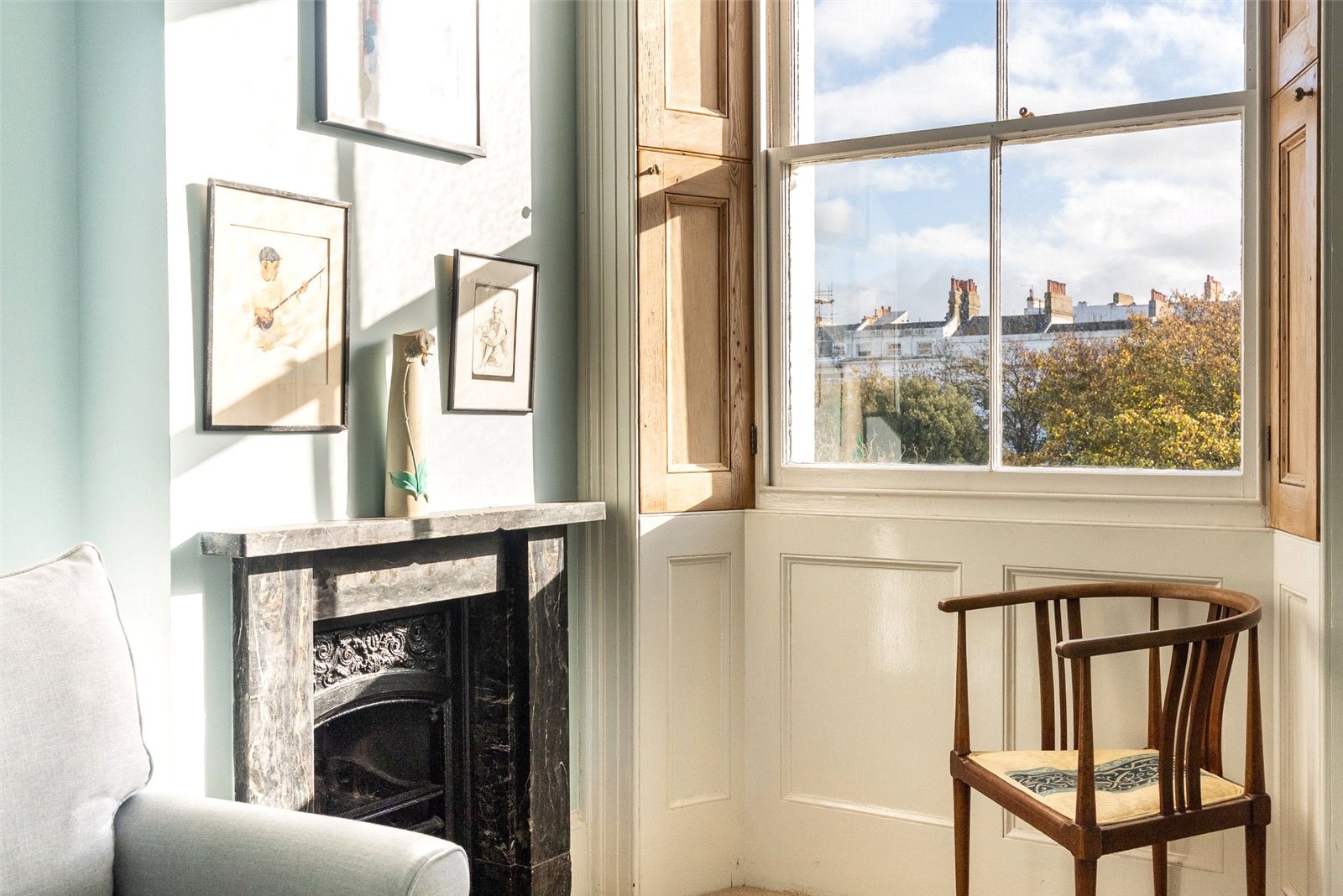 Situated in one of Brighton’s most prestigious addresses, this wonderful Grade I listed two double bedroom apartment on Sussex Square perfectly captures the elegance and charm of Regency architecture. The property forms part of a magnificent terrace renowned for its historical and literary significance, proudly displaying a plaque marking the stay of Lewis Carroll, author of Alice in Wonderland.