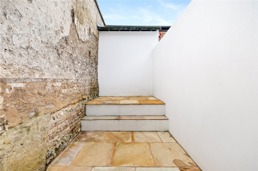 There are three bedrooms in total, including two well-sized doubles and a further single. The principal bedroom benefits from extensive built-in wardrobes and a smart en-suite bathroom, while the additional family bathroom is beautifully appointed. Completing the home is a charming private patio, offering a peaceful outdoor retreat.