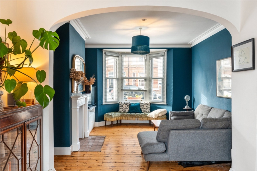 The first floor offers a spacious bay-fronted double bedroom, a second well-sized double, and a third smaller bedroom that would make an ideal study or nursery. A chic, fully tiled family bathroom with a shower over the bath completes this floor.
