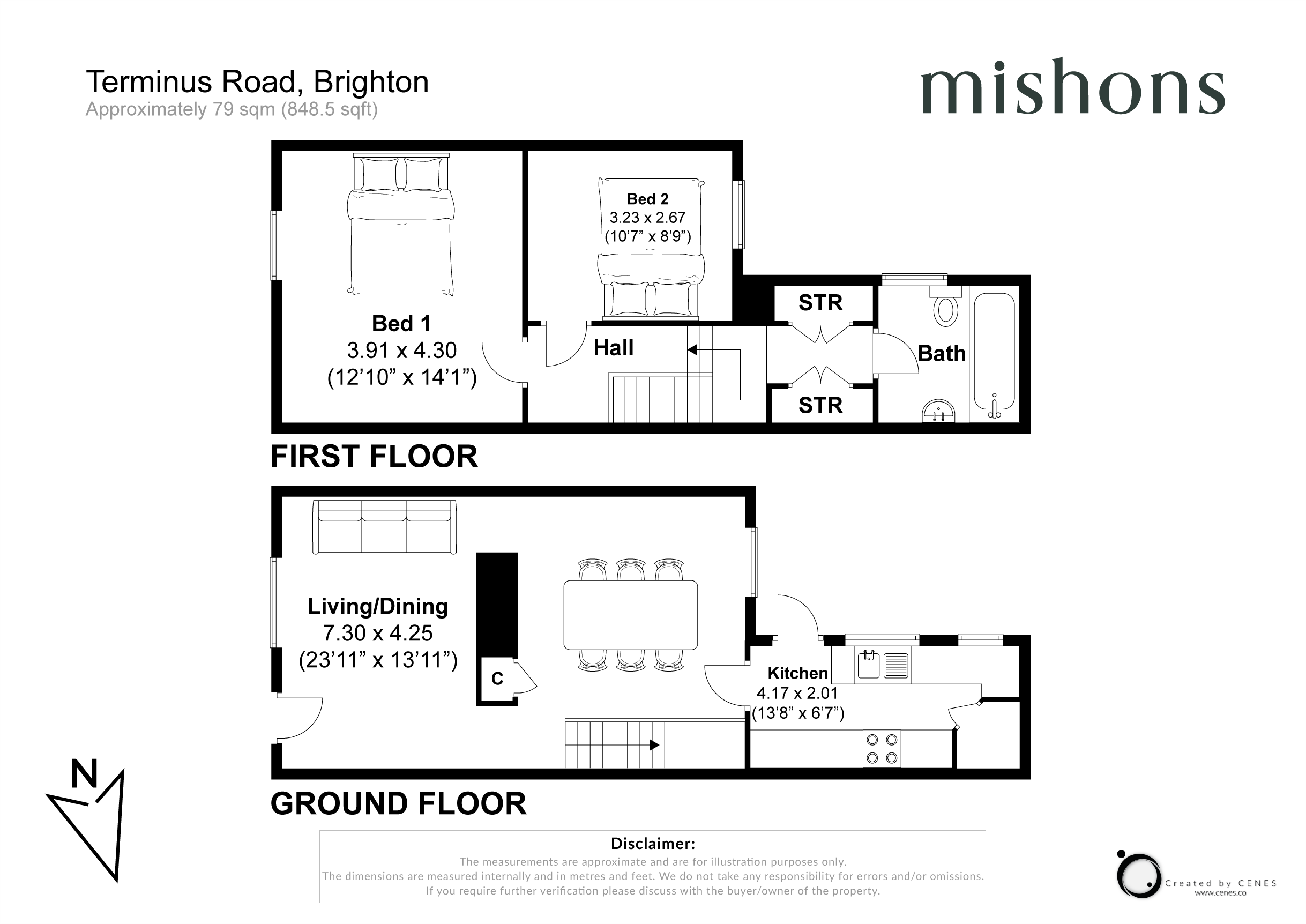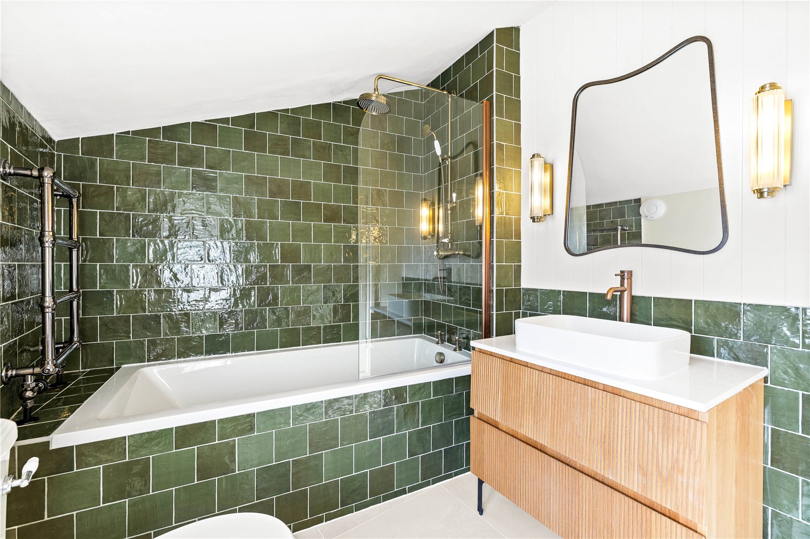 Upstairs, the stylish family bathroom sits at the rear, with a generous second double bedroom in the centre of the home. At the front, the full-width principal bedroom provides a light-filled and spacious retreat.