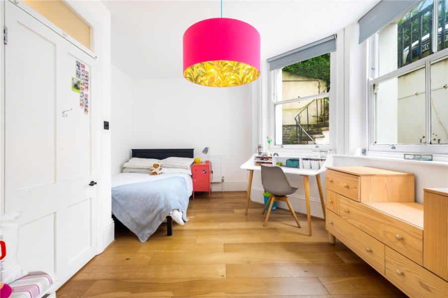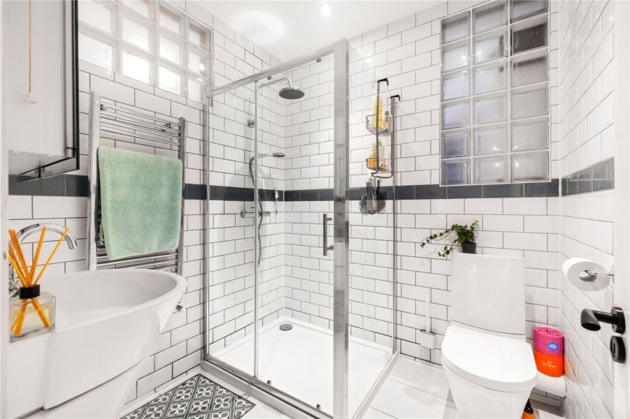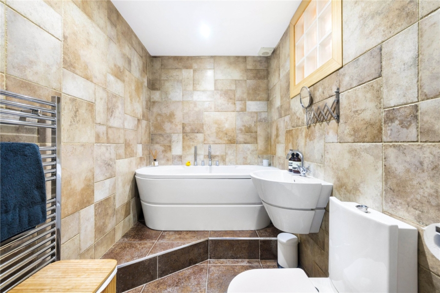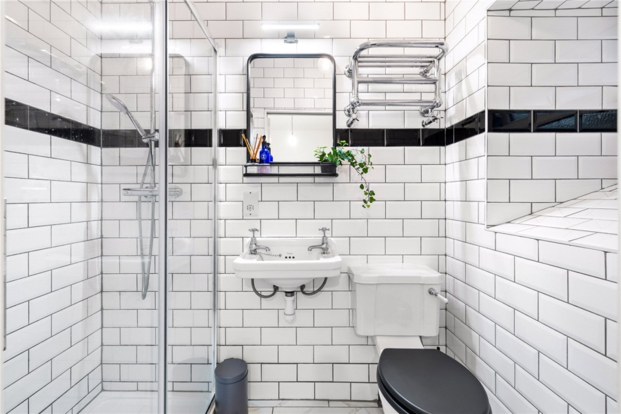 Arranged over one level, the flat provides three well-proportioned bedrooms and three modern bathrooms, including two en-suites. The principal bedroom benefits from fitted wardrobes and direct access to its en-suite, while the impressive third bedroom features an attractive bay window and built-in wardrobes.