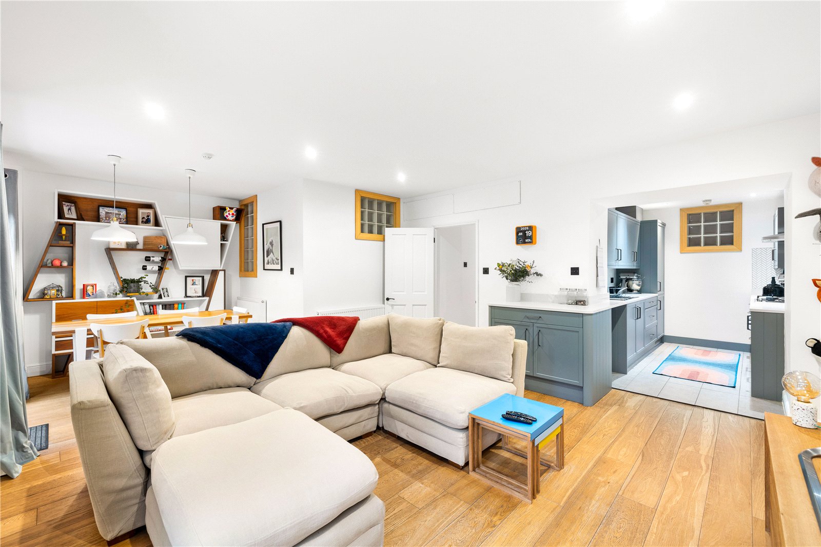 The main living space is superbly laid out, with a large living area flowing into a designated dining space — an ideal layout for both day-to-day living and entertaining. The separate fitted kitchen is well-appointed, while useful storage cupboards are positioned off the central hallway.