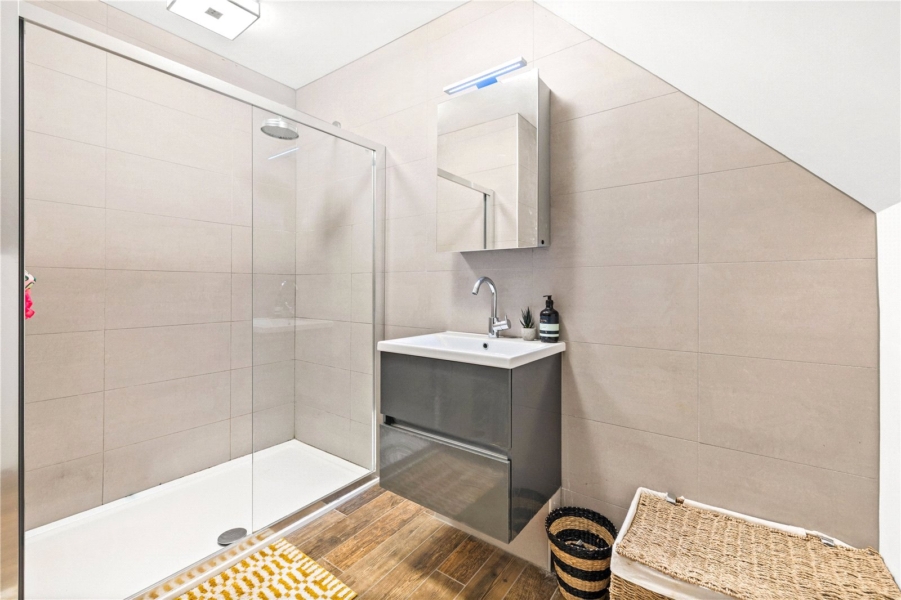 The upper floor provides two further generous double bedrooms, including an impressive principal bedroom with its own ensuite. A separate WC serves the remaining accommodation, while useful eaves storage enhances functionality without compromising the sense of space. The layout also lends itself well to home working or hosting guests if required.