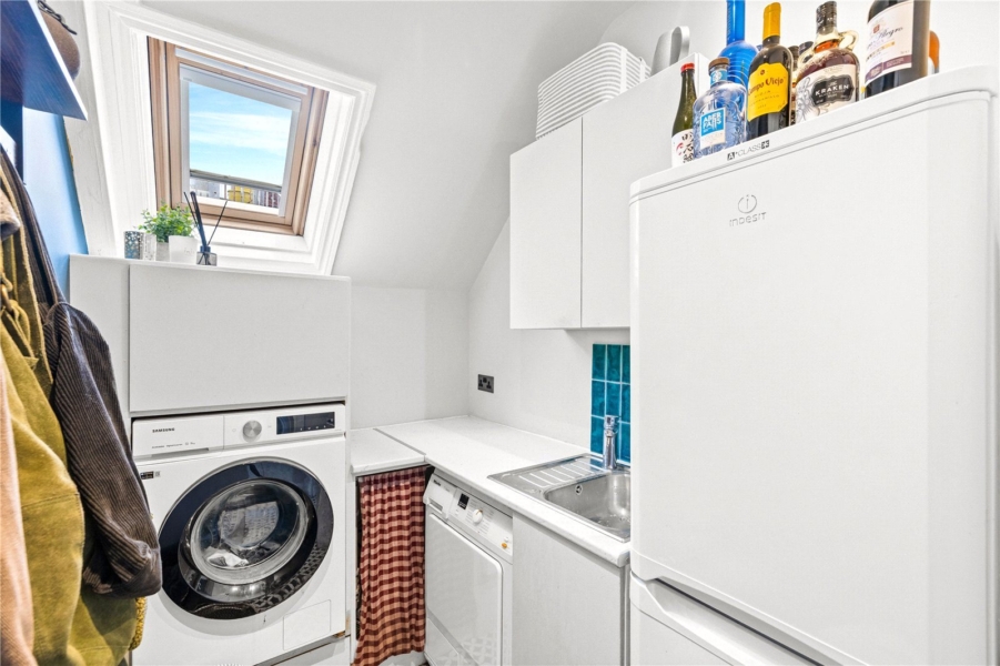 Arranged across the upper floors, the accommodation is well balanced and versatile, making it well suited to families, a professional couple or those seeking generous living and entertaining space. The main living areas create a welcoming heart of the home, with a superb living and dining room flooded with natural light and offering ample space to relax or entertain. The adjoining kitchen is well proportioned and thoughtfully arranged, complemented by a separate utility room that adds everyday practicality. This level also benefits from a spacious double bedroom, a well-appointed bathroom and excellent storage.
