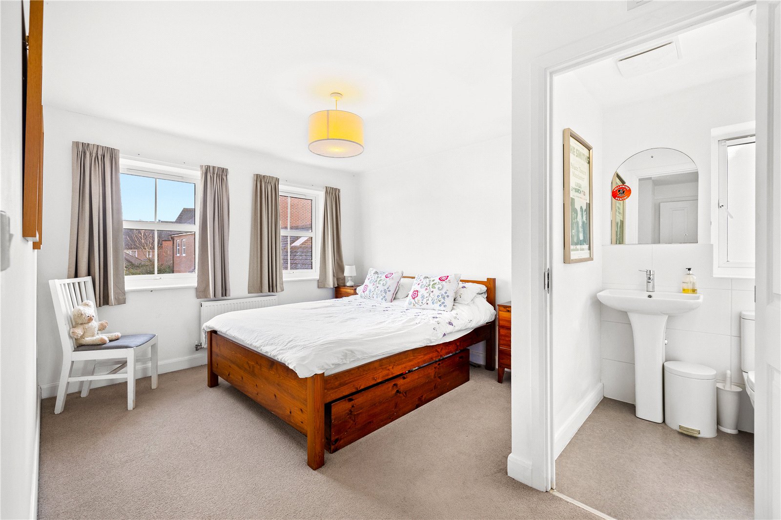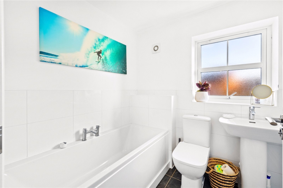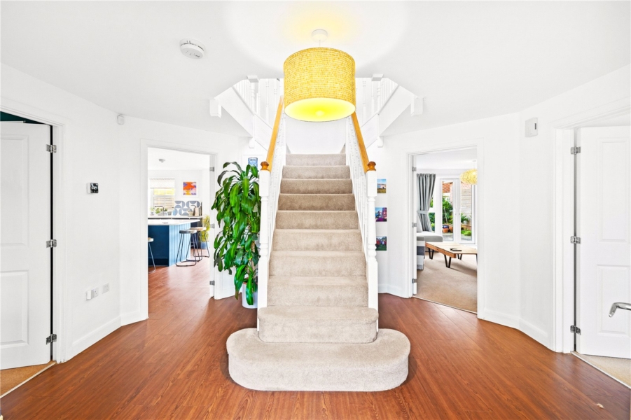 The ground floor is centred around a welcoming entrance hall with a staircase leading to the first floor. There is a generous sitting room, separate dining room and a study ideal for home working. The kitchen/breakfast room forms the heart of the house, with plenty of space for dining and seating and doors opening to the south facing garden. A utility room, cloakroom and useful storage complete the ground floor.